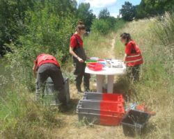 - Appareils de mesure pour la biométrie des individus capturés (quatre épuisettes, règles, balances, gants, pinces, etc.)